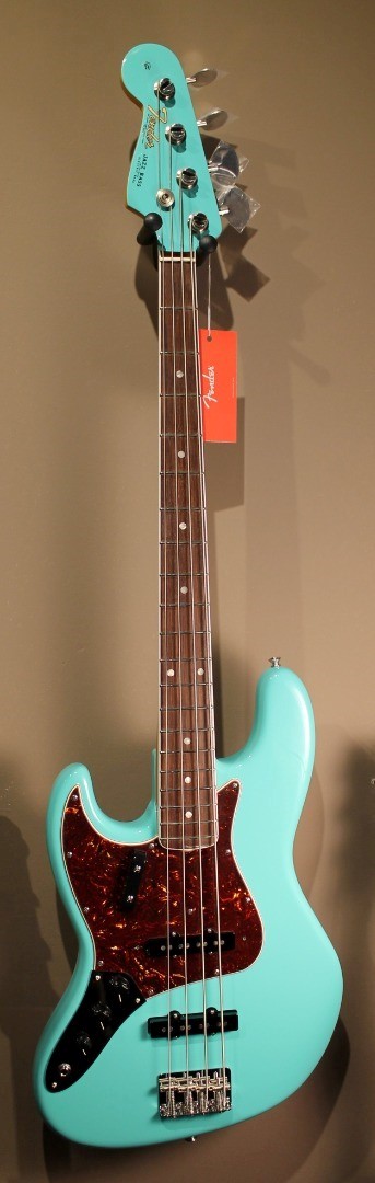 The American Vintage II 1966 Jazz Bass features a comfortable "U" shape hard rock maple neck, and it plays like a dream with a 7.25" radius round-lam rosewood fingerboard and vintage tall frets. Characteristic of production in 1966, this J-Bass® is offered with white neck binding, pearl dots, two volume controls with master tone, matching painted headstock and 4-ply tortoiseshell pickguard. The 4-saddle bridge with threaded saddles, vintage-style "lollipop" tuners and Pure Vintage '66 Jazz Bass pickups deliver classic thump and style.